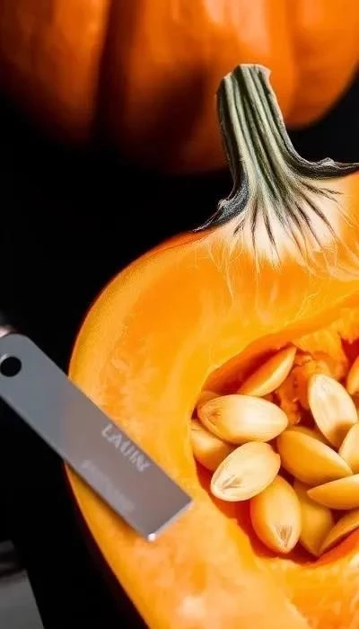 - Удаление семян: Разрежьте тыкву пополам и удалите семена ложкой. Семена можно промыть, высушить и обжарить – это отличный перекус!