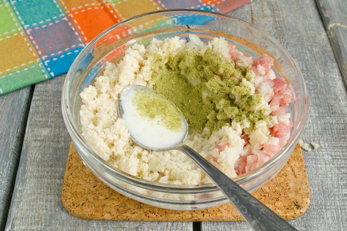 Добавляем ароматные приправы, к примеру, хмели-сунели или готовые специи для котлет. Будьте внимательны, в готовых приправах есть соль, это нужно учитывать, чтобы не пересолить блюдо.