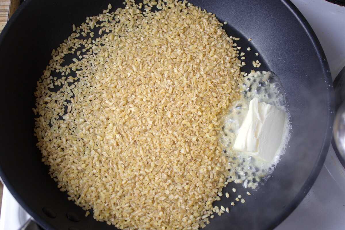 - Пока варится бульон, займитесь остальными ингредиентами. Прогрейте булгур на сухой сковороде – это необходимо для того, чтобы крупа приобрела лёгкий ореховый привкус. При желании этот этап можно пропустить.