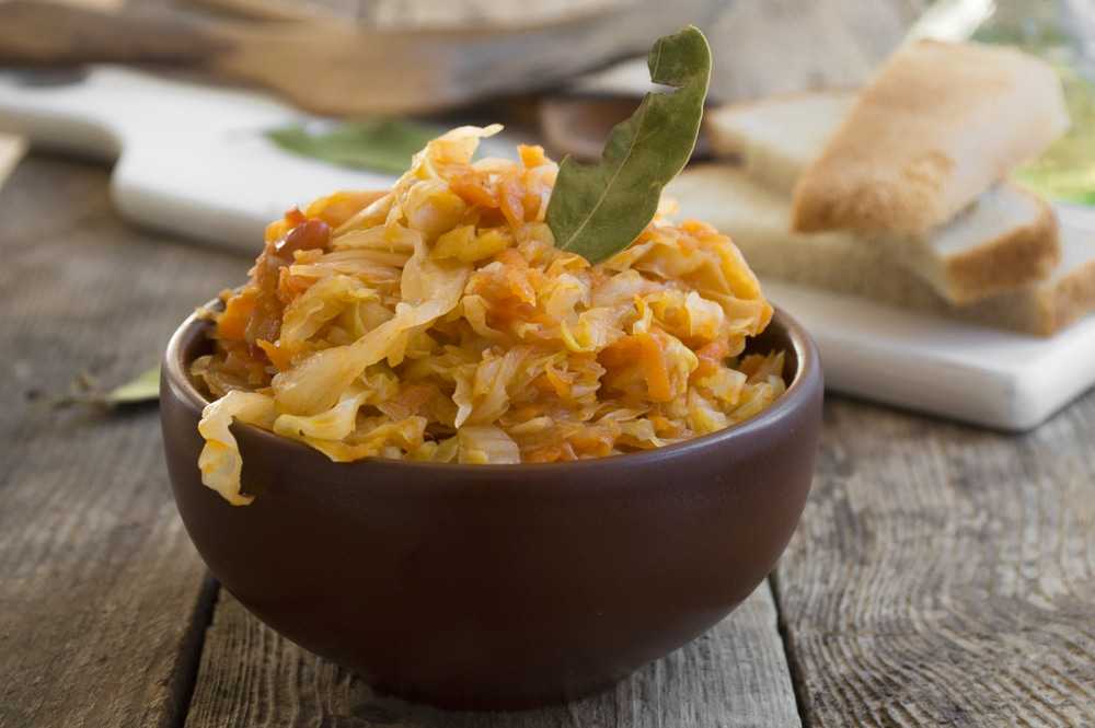Классический рецепт можно разнообразить, добавив к основному ингредиенту морковь, сладкий перец и зелень. В этом случае блюдо будет больше напоминать овощное рагу. На 1 кг капусты добавляют: