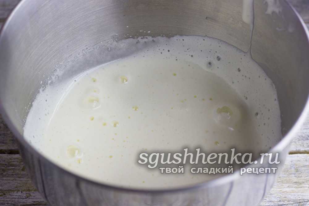 Когда молочная смесь остынет, добавляем ее к маслу.