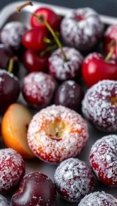 Для предотвращения слипания фруктов при заморозке рекомендуется предварительно разложить их в один слой на подносе или противне, покрытом пергаментной бумагой, и заморозить в течение нескольких часов. После этого фрукты можно пересыпать в герметичные контейнеры или пакеты для длительного хранения.