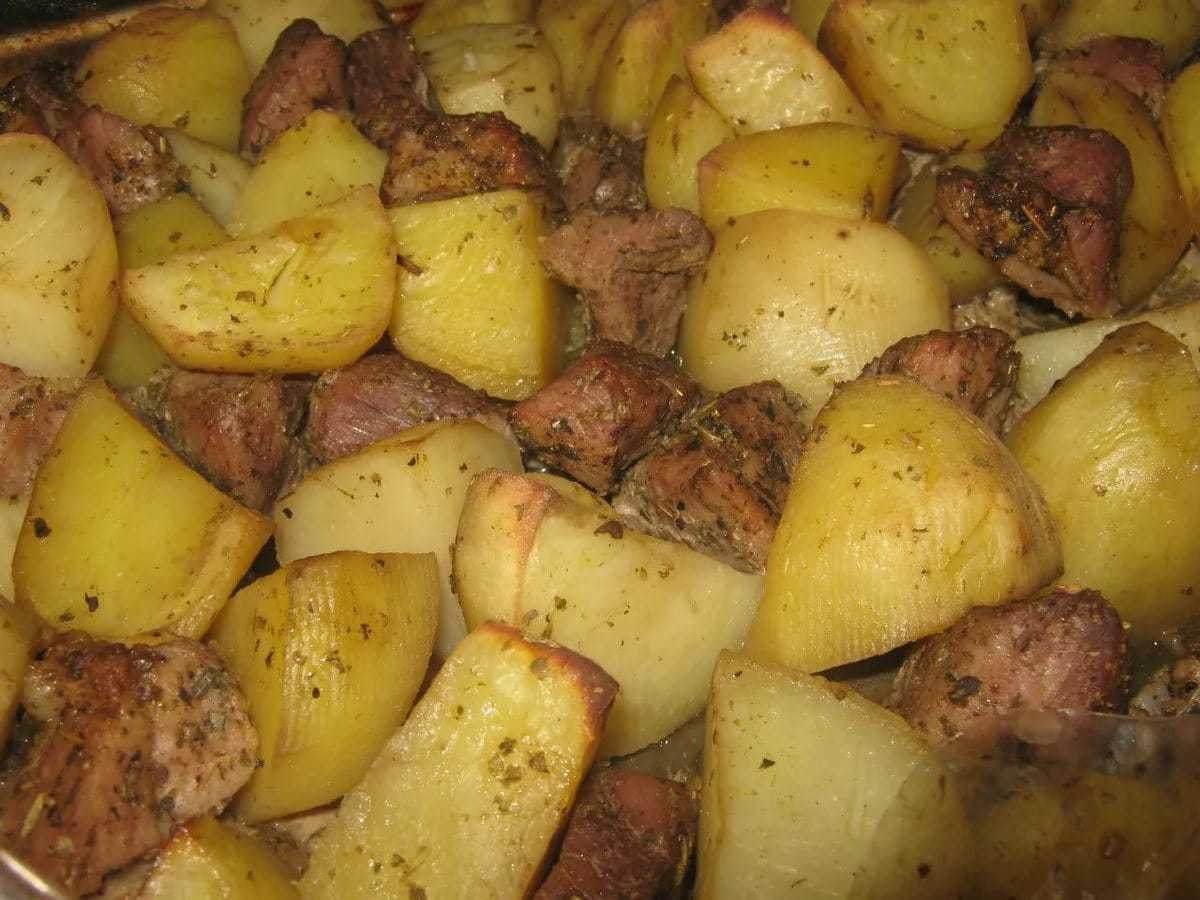 Духовка удобна тем, что можно приготовить полноценное блюдо в одной ёмкости без сложных манипуляций, например, картофель со свининой. В стандартном варианте рецепт предполагает минимальный набор ингредиентов: картофель (5 клубней), 0,5 кг мяса, луковица, специи и майонез.