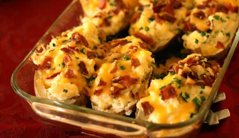 Остаётся лишь смешать ингредиенты и выложить их в форму для запекания. По готовности картофеля блюдо присыпают сыром и запекают ещё 5-10 минут для корочки.