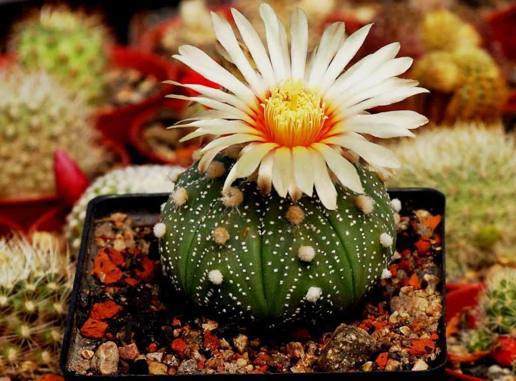 Принадлежит к семейству кактусовых. С греческого языка название переводится как «похожий на ежа». Родом из Южной Америки. Встречается в Бразилии и Уругвае. Цветоводы души в нем не чают. Селекционеры рьяно взялись за дело. В результате сегодня можно встретить огромное число непохожих один на другой представителей одного вида, отличающиеся между собой, прежде всего, цветом. Цветение приходится на весну и длится более полугода. Предпочитает расти и развиваться при ярком солнечном свете. Минимально допустимая температура в помещении – 20 градусов тепла. Полив нечастый и скромный. Удобрения вносятся раз в месяц. Размножение происходит посредством деток и семян. Плохо переносит паутинных клещей. Подвержен гнили.