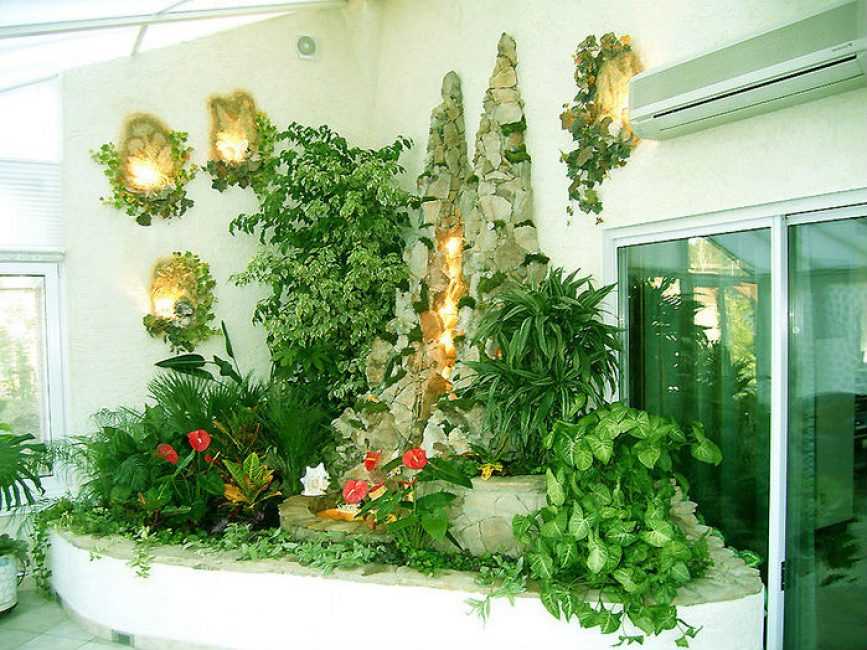 Домашние цветы в обрамлении натурального камня, с мелодичным журчанием воды и декоративной подсветкой – это то, что нужно. Альпинарий станет настоящей изюминкой интерьера и вашей гордостью.