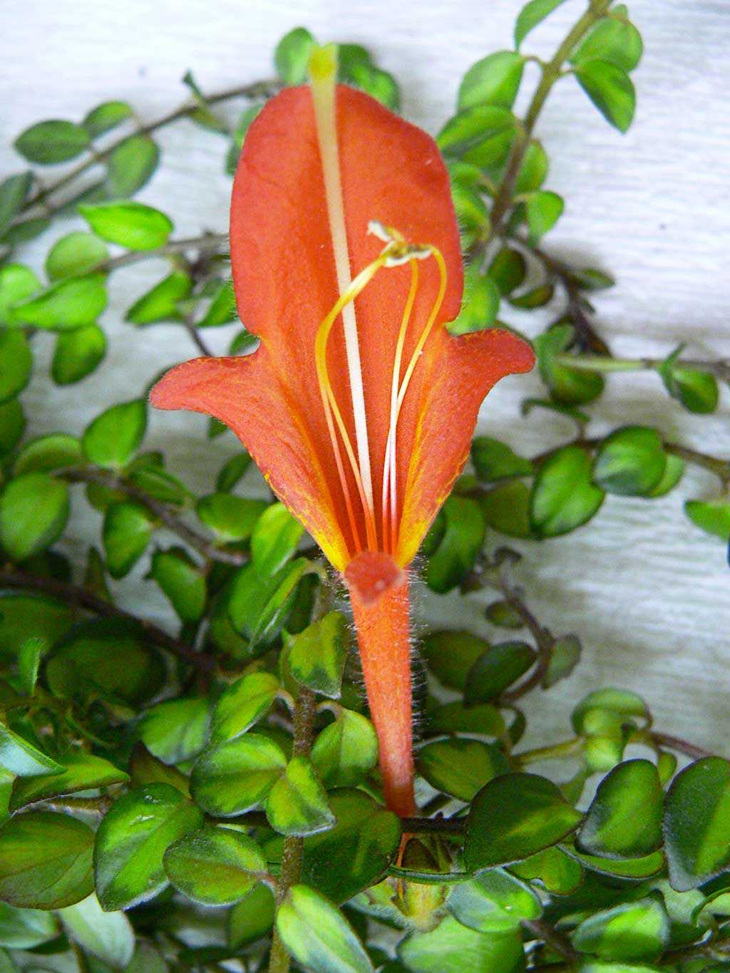Для поклонников декоративно-лиственных культур предлагаем обратить внимание на разновидность колумнеи Кроваво-Красной. Такое название она получила благодаря тому, что на изнаночной стороне ее листьев имеются красные пятна. В природе многолетник представлен в качестве кустарника с уплощенными стеблями