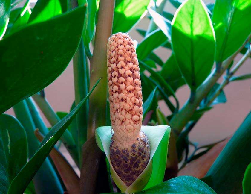 Не обращая внимания, что у замиокулькаса не настолько красивый расцвет, наблюдающееся редко, все равно оно остается красивым и неприхотливым растением. Особенность – это воск, появляющийся после цветения, что делает его популярным среди садоводов. Цвести долларовое дерево будет долго, размножаться тоже. Поэтому, нужно правильно ухаживать за цветком замиокулькасом в домашних условиях.