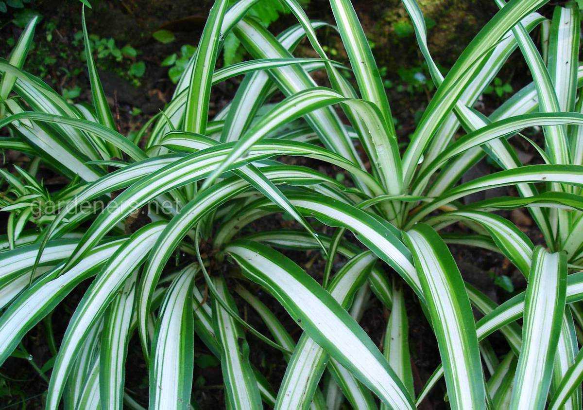 Отличный вид для подвесных корзин. Имеет зеленые листья в белую полоску или с желтой по краям, свисающие до 2 метров. Любит затенение или полутень.