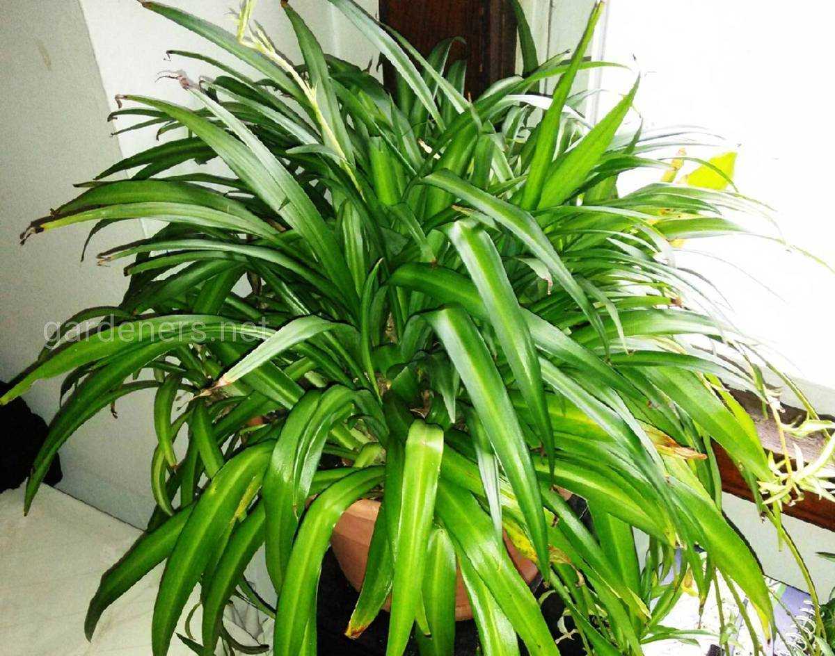 - Невысокое (от 20 до 40 см) многолетнее растение, образующее в процессе роста розетку из длинных узких листьев (до 80 см). В природных условиях длина листьев достигает 120 см.