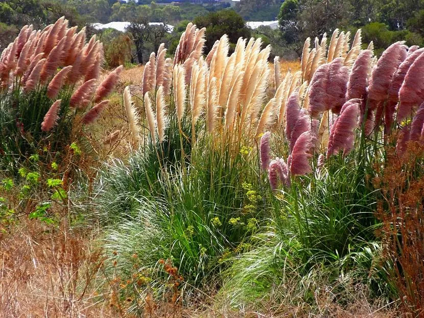 Специалисты по ландшафтному дизайну отмечают, что пампасная трава с яркими соцветиями хорошо растет только в теплых странах. Несмотря на то, что эти растения морозостойки, в России они не способны цвести яркими оттенками. В большинстве случаев даже вариант с красными цветами будет серебристым, пепельным или белым.