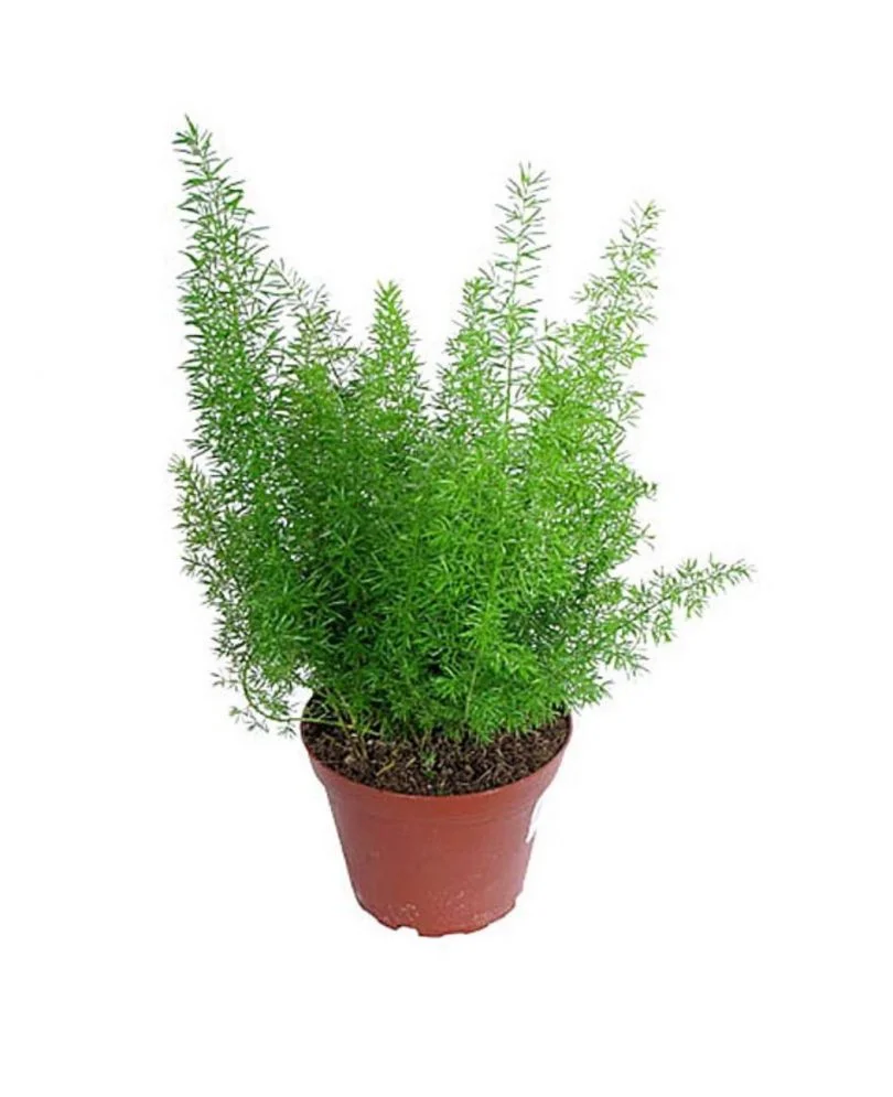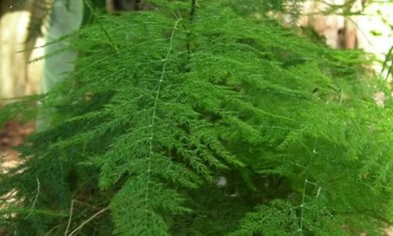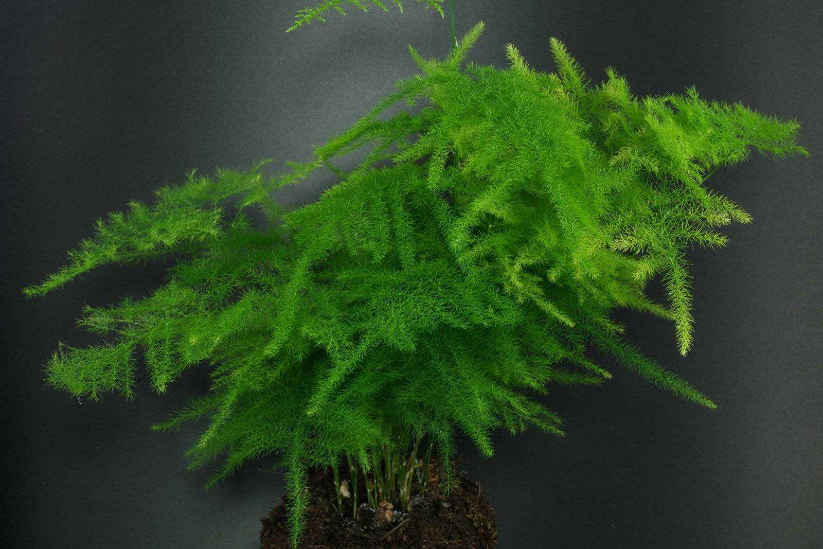 Аспарагус перистый (Asparagus plumosus) выходец из Южной Африки. Широко используется для озеленения, в составлении композиций, букетов. Побеги растения иглообразные, тонкие собраны с метёльчатые образования, которые располагаются на гибком, тонком, часто вьющемся стебле. Цветение происходит только у растений старше 10 лет. Ягоды сине-чёрные, быстро опадающие. Предпочитает слабо освещенное помещение.