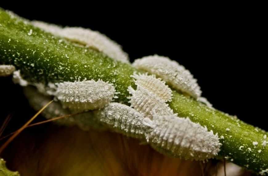 | Мучнистый червец или войлочник | Поверхность листьев и побегов покрывается пушисты ватообразным белым налетом. Растения отстают в развитии | Народные средства: опрыскивание мыльно — спиртовым раствором. Хорошо проявили себя настой табака, чеснока, клубней цикламена, спиртовые обработки, аптечная настойка календулы. Химические средства: раствор зеленого мыла, Актеллик, Фитоверм. |