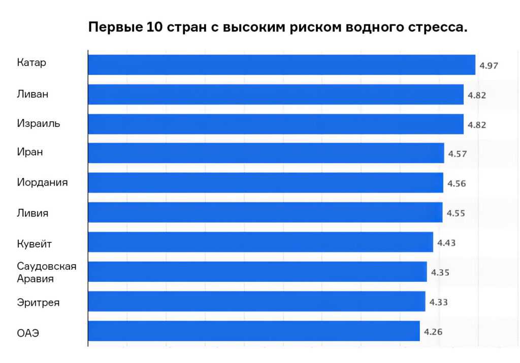 Первые 10 стран с высоким риском водного стресса. Источник