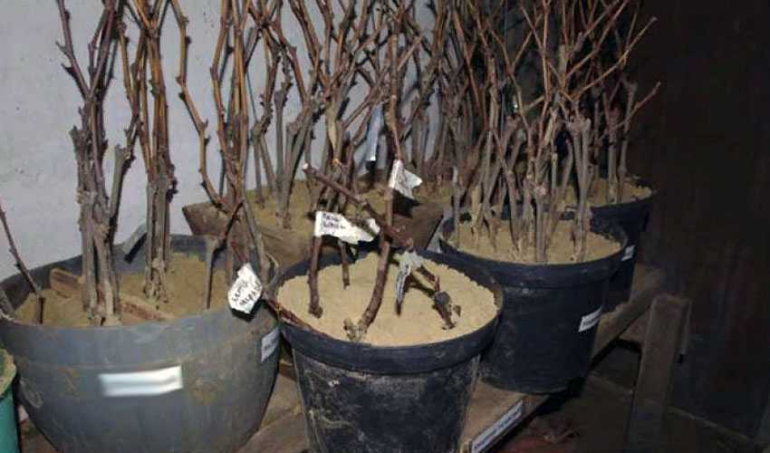 Если вы все-таки не решаетесь на осеннюю прикопку саженцев на участке, можно сохранить их до весны в прохладном помещении (погребе или гараже), присыпав корни и половину ствола песком и периодически увлажняя корешки.