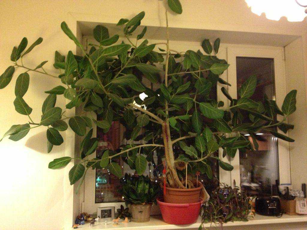 Каучуконосный фикус, сильно ветвящийся кустарник, с пышной кроной, яркой красивой листвой.