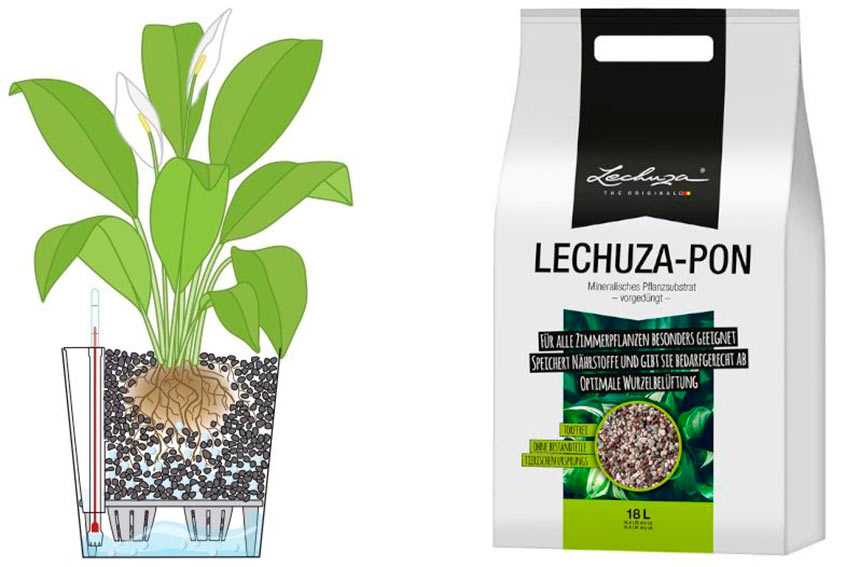 Субстрат Лечуза Пон, основанный на минеральных компонентах, включает в себя удобрения длительного действия, которых хватает на полгода после пересадки растения. Этот фирменный грунт может использоваться как дренаж или полноценная замена обычной земли. Кроме того, LECHUZA-PON также подходит для высадки крупных растений, так как обеспечивает им отличную опору.