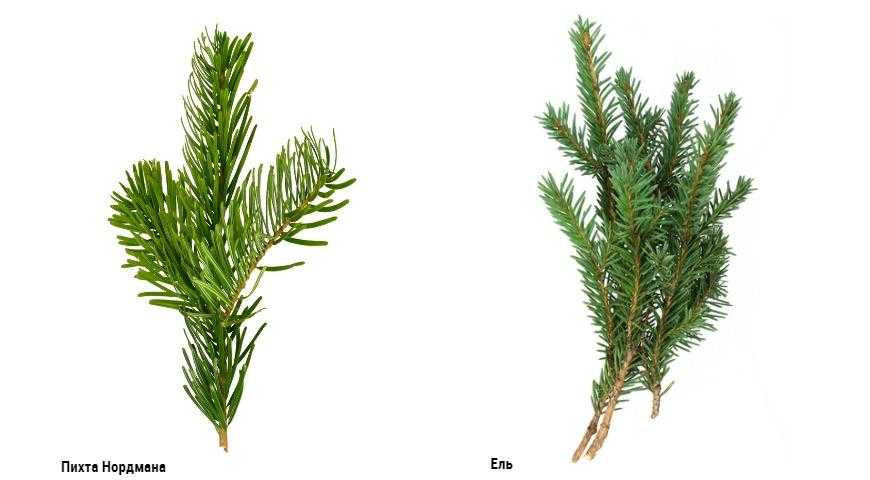 Пихта обыкновенная и Дугласа. Иглы расположены по спирали вокруг стебля. Если раздавить их руками, они будут сильно пахнуть.