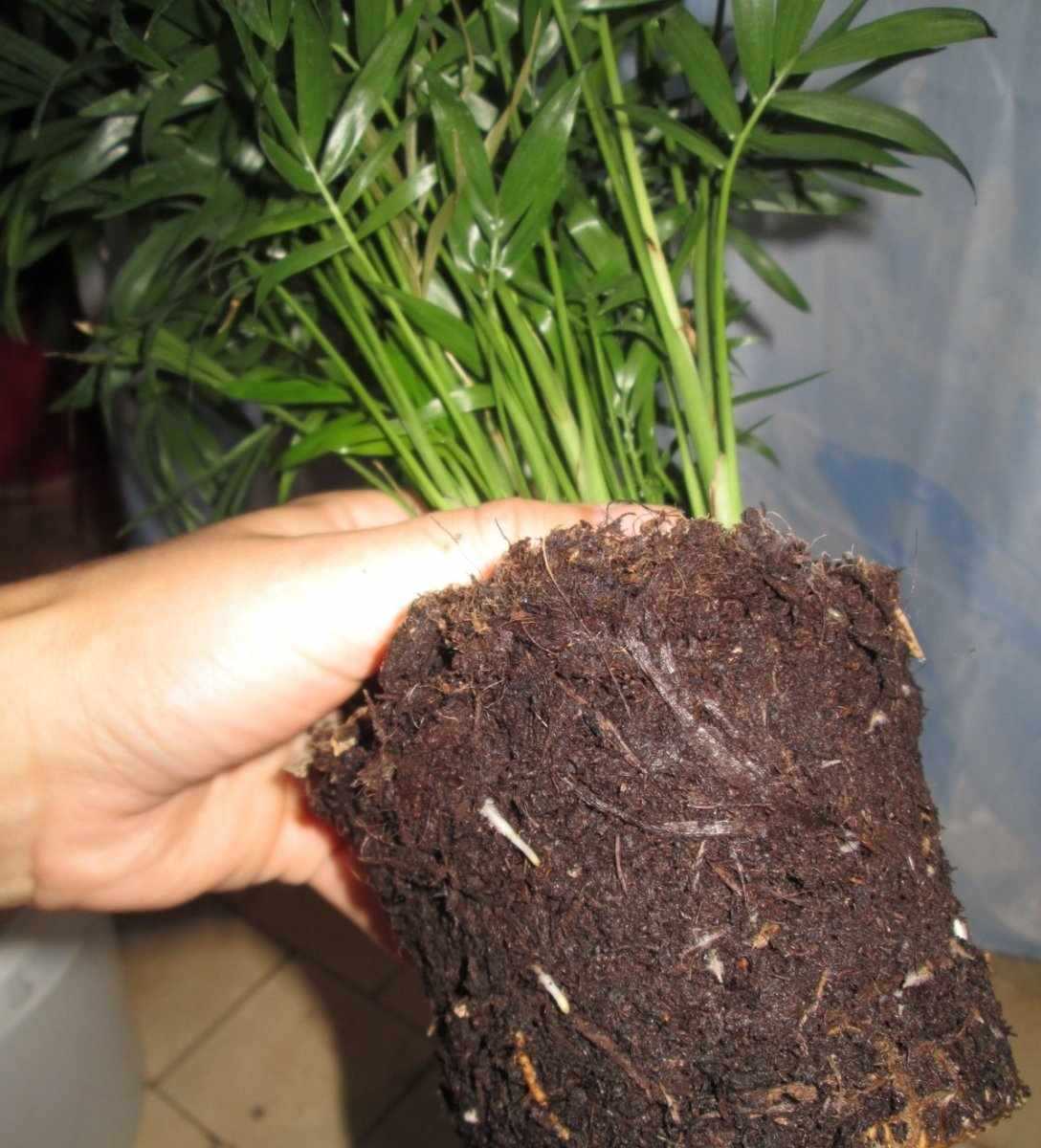 Затягивать пересадку купленной пальмы не стоит – это не прибавит ей здоровья, а также удвоит время привыкания к условиям квартиры. Провести процедуру лучше сразу же, полностью убирая торфяной субстрат с корневых отростков.