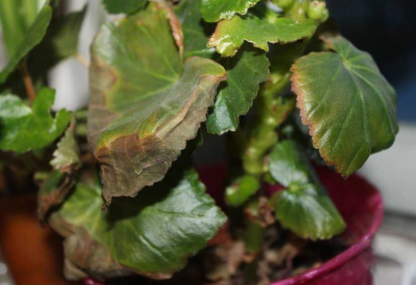 Если у бегонии листья начинают сохнуть только по краям и портятся, это может быть вызвано несколькими факторами.
