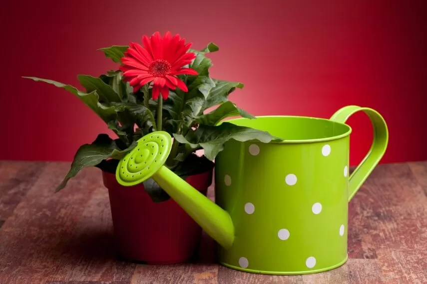 Нельзя часто поливать африканскую ромашку (не более 2 раз в неделю), так как цветок неплохо переносит умеренную сухость субстрата. Полив можно проводить в случае, если верхний земляной слой успел подсохнуть. В зимний период поливают герберу скудным количеством воды и не чаще 1 раза в неделю.