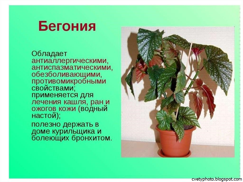 Бегония – остается одним из любимейших цветущих комнатных растений среди цветоводов. Ценится за красоту листьев и обильное цветение. Не требователен в уходе, поражает своим разнообразием видов, хорошо растет на северной стороне, опрыскивать не рекомендуется.