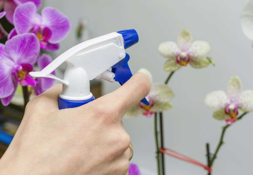 Орхидея не любит сухой воздух. Ее необходимо систематически опрыскивать слегка теплой водой, особенно в жару или если цветок расположен возле батареи центрального отопления.