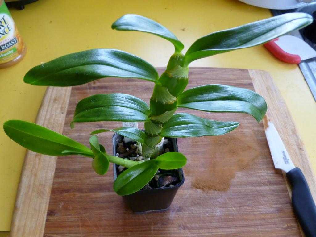 Вегетативное размножение псевдобульб: У некоторых орхидей можно воспользоваться вегетативным размножением псевдобульб. Отделите здоровую и развитую псевдобульбу от растения и посадите ее в отдельный горшок с подходящим грунтом