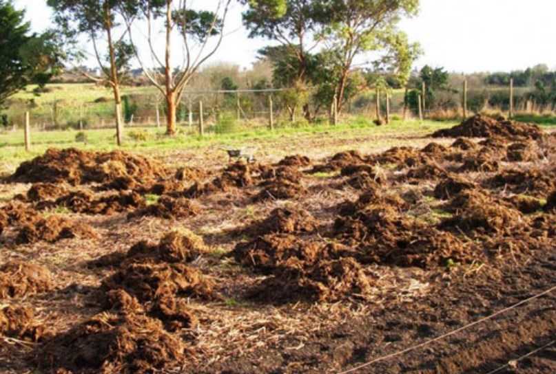 Покупаем в любом близлежащем фермерском хозяйстве навоз и выкладываем его в кучу или в заранее подготовленной для этой цели компостный ящик.