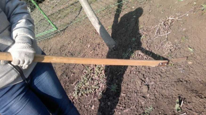 Рыхление и прополка выполняется широкой стороной лезвия – оно входит в грунт на оптимальное расстояние (около 5 см) и легким движением протягивается на себя или вдоль грядки. При этом инструмент напоминает косу. Почва не должна пригребаться, а оставаться на месте, взрыхленной.