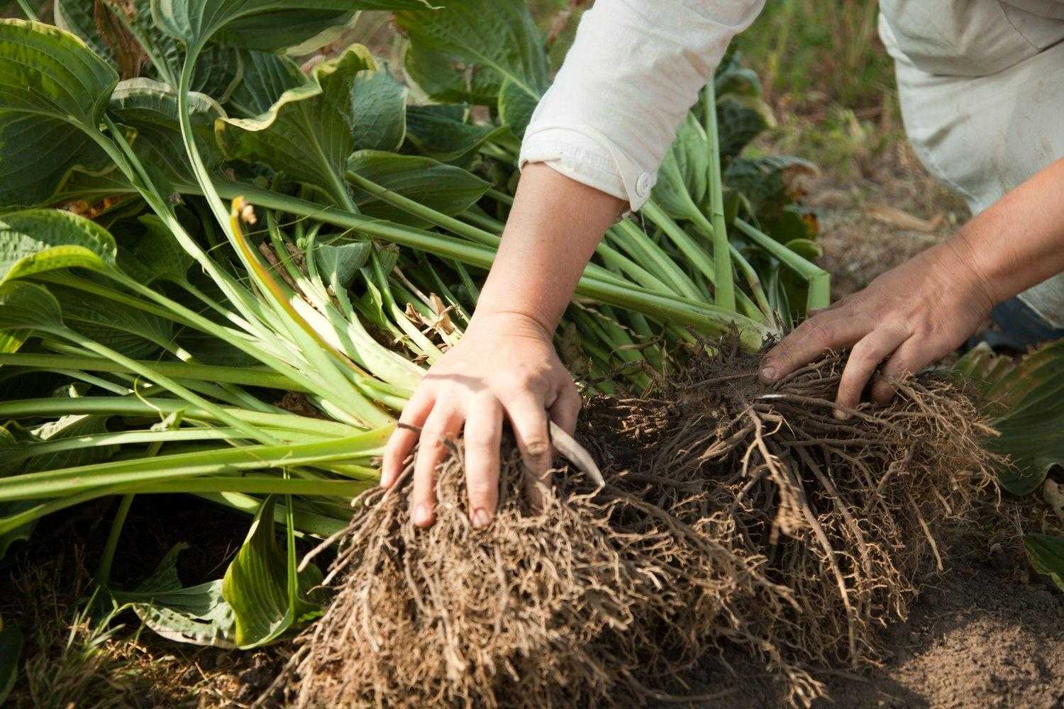 Делить хосту нужно аккуратно, чтобы как можно меньше повредить корневую систему. Маленькие корешки аккуратно разделяют руками, большие саженцы делят ножом с зубчиками.