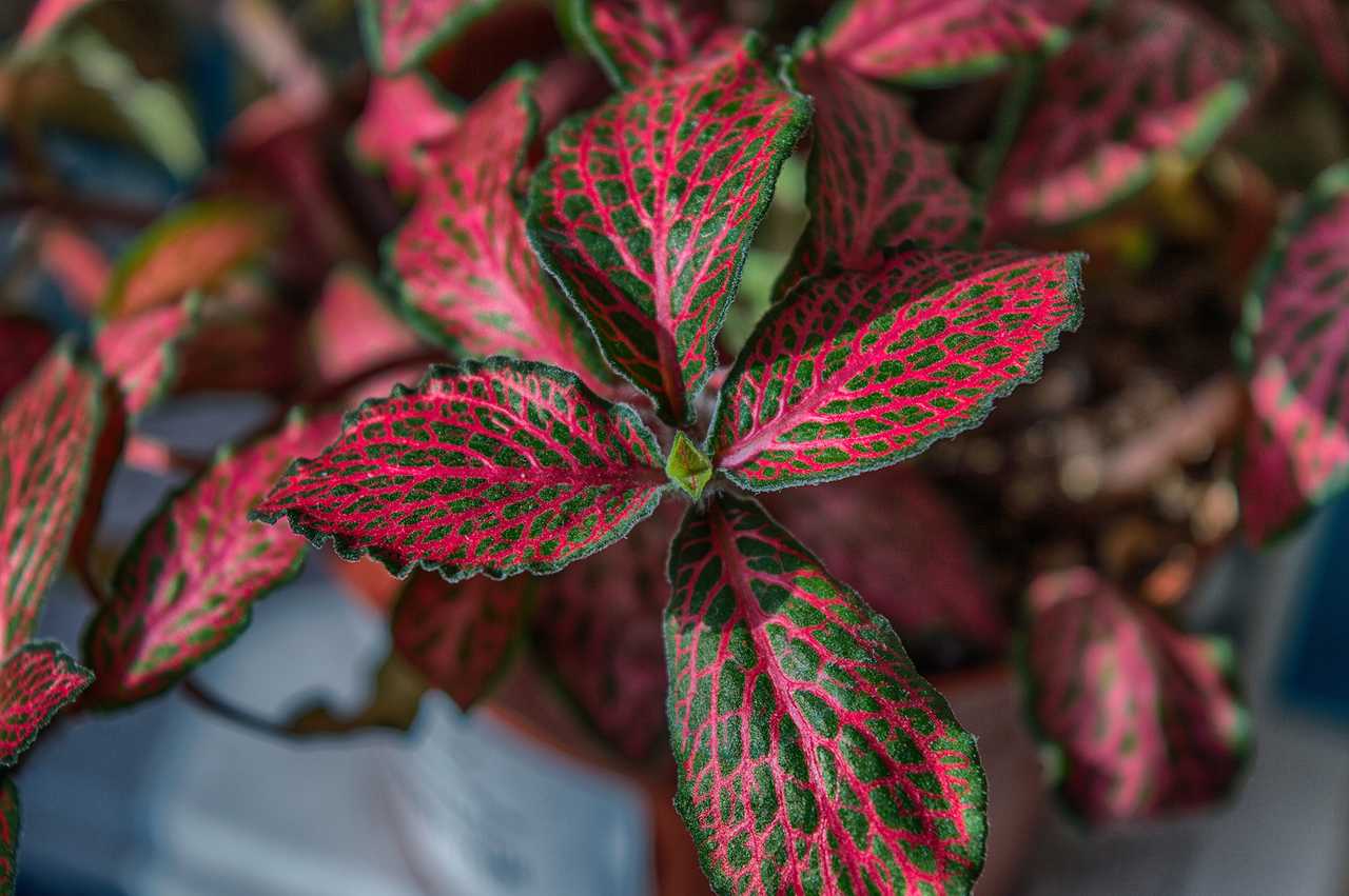 Окрас листа. Прожилки и сам лист различны по цветовой гамме, которая зависит от разновидности фиттонии.