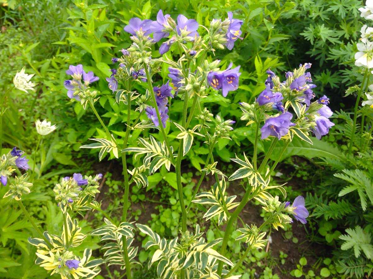 В декоративном садоводстве используется также пестролистная форма синюхи голубой (Polemonium caeruleum f. variegata).